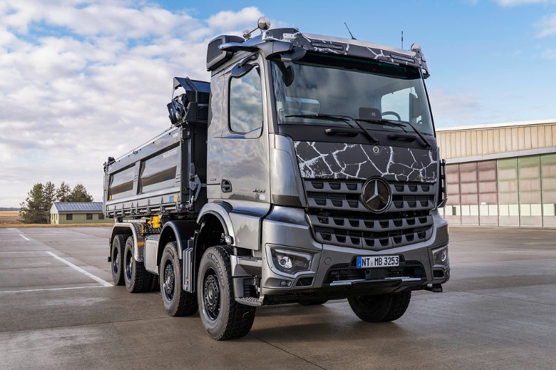 Additional standout features of the Arocs Extent include a black panel behind the Mercedes-Benz star in dark chrome, LED headlights, additional LED headlights integrated into the sun visor, carbon-look trim elements, premium stainless steel axle caps and wheel nut covers, a leather steering wheel, and the Extra Line package. The truck is powered either by the third-generation Euro VI diesel engine OM 470, OM 471 or the OM 473, the largest Euro VI diesel engine from Mercedes-Benz Trucks. Another highlight of the Mercedes-Benz Arocs Extent is the Multimedia Cockpit Interactive 2, which has been installed as either a standard or special equipment in all Arocs and Actros models since this spring, depending on the driver’s cab configuration.